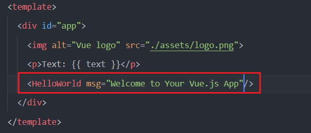 In the template, notice that we have already nested the HelloWorld component in the parent div, and that data is being passed to it from the app component. This is part of the default Vue landing page setup: