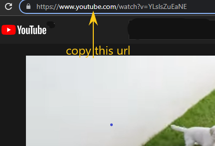 - Either copy the url on the for sharing option, or if on a browser copy the url of the video as it plays on the browser. The image below show a simple example of such url.