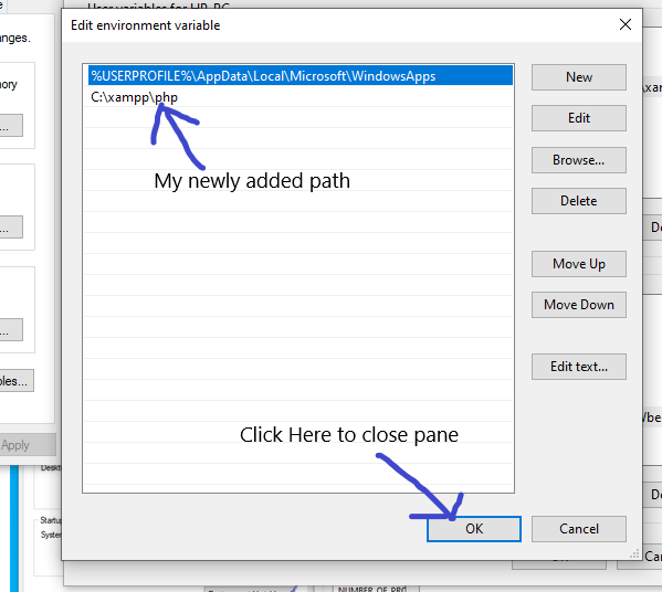 The steps below outline the process of adding a path in Windows. Although the example is for Windows 10, it works for both Windows 7 and 8 as well.