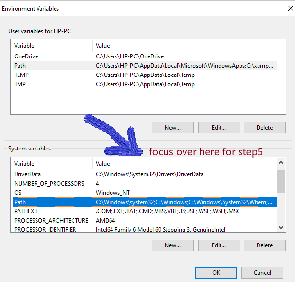 You will only see two panes again. Go to the environment variable pane and head to the system variables section. Once there, choose the path option again.