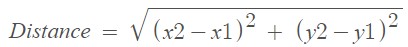 If we assume two points A(x1,y1) and B(x2,y2), then the Euclidean distance is shown in the graph below. This is also called straight line distance.