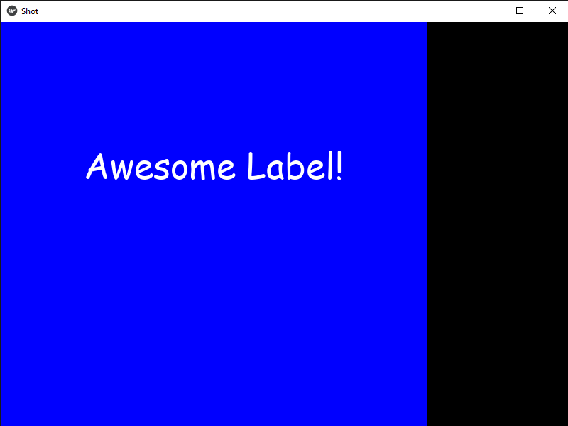 <Shot>GridLayout:cols: 1size: root.height, root.widthLabel:text: "Awesome Label!"font_name: "Comic"font_size: 50background_color: (0, 0, 1, 1)canvas.before:Color:rgba: self.background_colorRectangle:size: self.sizepos: self.pos