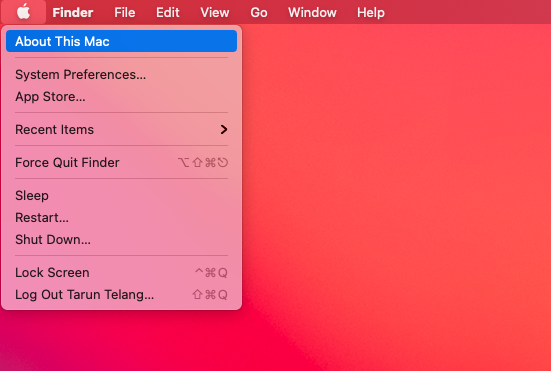 Your MacOS version should be 10.14.4 or later. Otherwise, you will also need to install Swift 5 Runtime. You can verify the MacOS version by clicking on the “About This Mac” option (as shown below) from the Apple menu on the top left of your desktop.