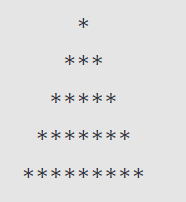 forloop to print stars2 * i - 1times, whereiis the current iteration of outer loop. For example, ifi= 3, we will print 5 stars in the third row usingprocess.stdout.write('*'). -