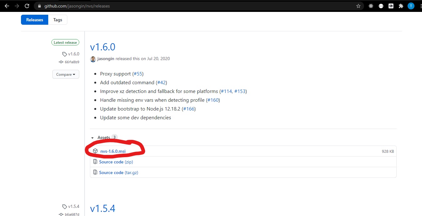 - First, head ove to this repository nvs msi download to install the msi of nvs in this repository on github.