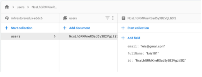 The user data will also be stored in the Firestore, as shown below: