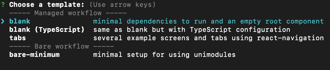 Upon running this command, the CLI will ask you to chose a type of template for your project. Choose blank (minimal dependencies).