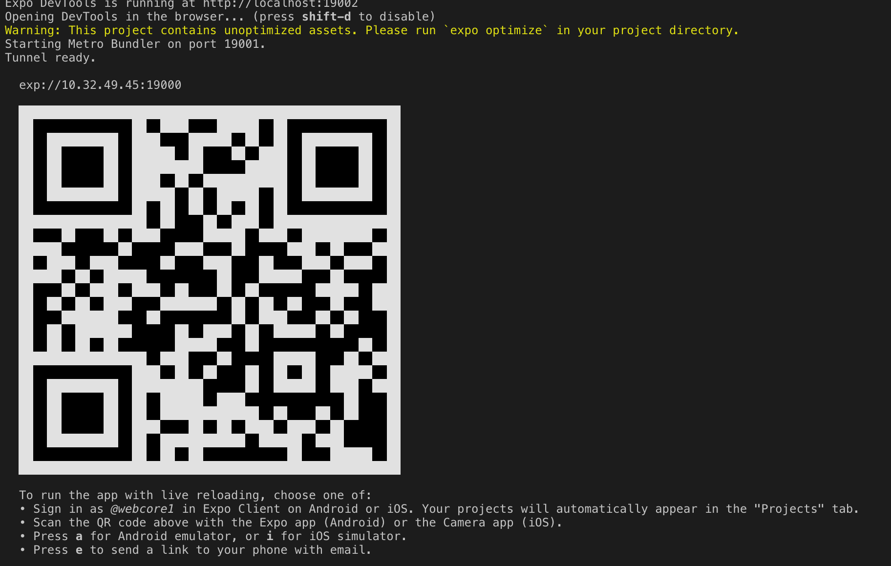 If your project runs successfully, a QR code will appear on your terminal as shown: