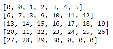 This iterator behaves in the same way as yeardatescalendar(year, width=3) with the exception that, where the elements in the list of objects with the yeardatescalendar(year, width=3) method were in datetime format, objects in yeardayscalendar(year, width=3) are simply the days of each month. The days that belong to months preceding or succeeding a specific month are replaced with 0.