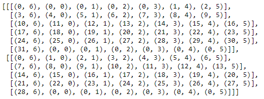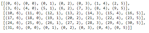 This iterator is different from all the other iterators that we have covered and is a bit trickier to understand. It takes year and width as its arguments, where width denotes the number of months and is set to 3 by default. The result is three lists in one, i.e., a list of lists of lists. They can be broken down as follows: