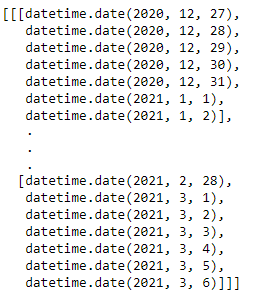 for date in my_calendar.yeardatescalendar(2021, width = 2):