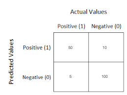 For example, let’s look at a binary classification problem. It is a 2 x 2 matrix split into two parts: actual values and predicted values.