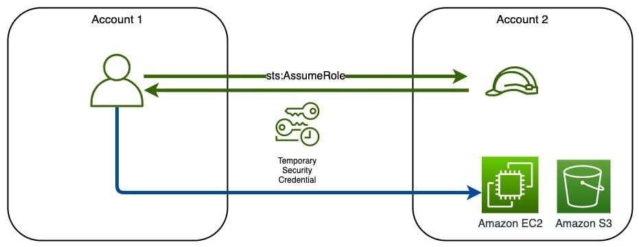 In the above diagram, we have a webapp that is running in an EC2 instance. Let’s say that the webapp needs to access the Amazon S3 bucket; the EC2 instance will then connect to an AWS STS to get temporary security credentials for a role that has permission to access the S3 bucket. These credentials will be stored in something known as the instance profile on the EC2 instance. The webapp can then connect to this local store to get the credentials at runtime and access the S3 instance.