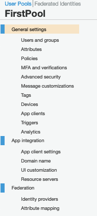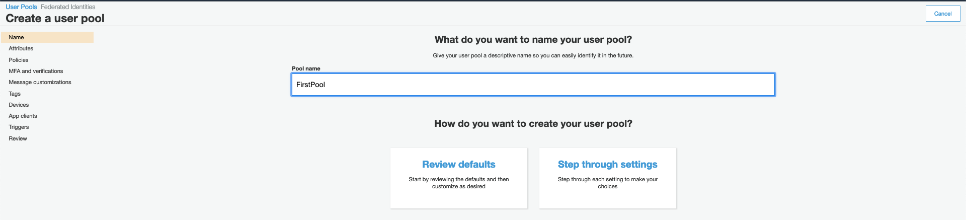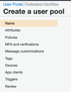 You will use the default user pool created before. Once you have created a User Pool, you can edit a lot of attributes provided here.