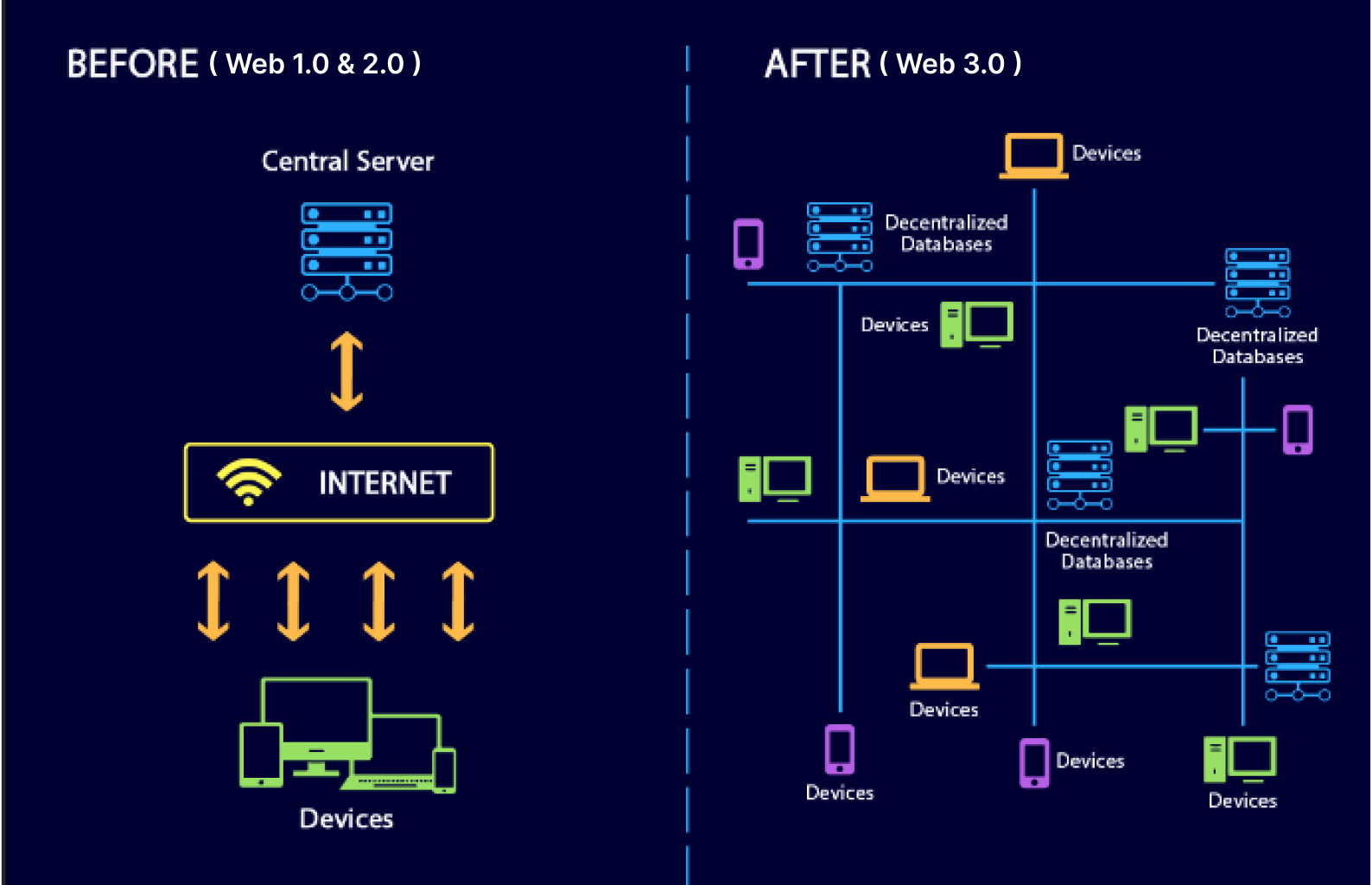 The Web 3.0 system can be explained further as the interconnection of data in a decentralized way, which is a huge leap forward from the second generation of web evolution (Web 2.0).