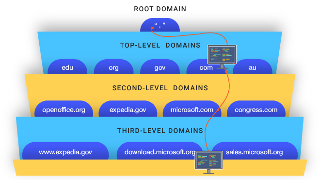 See below for a chart of the DNS server hierarchy: