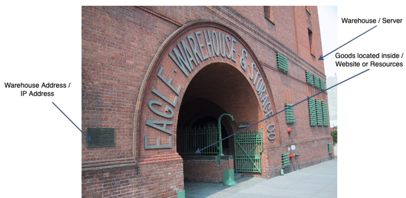Retrieving a website from a server is a lot like retrieving goods from a warehouse. The warehouse is akin to the server because it is remote, has an address just like servers have IP addresses and stores goods just like servers store or host websites.
