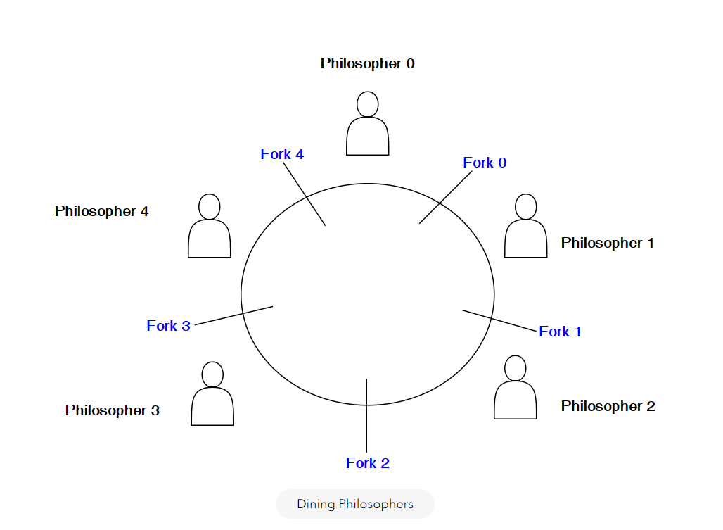 How would you solve a situation wherein 5 philosophers are eating at a roundtable, with each philosopher needing a fork in each hand in order to eat, but there are only 5 forks present?