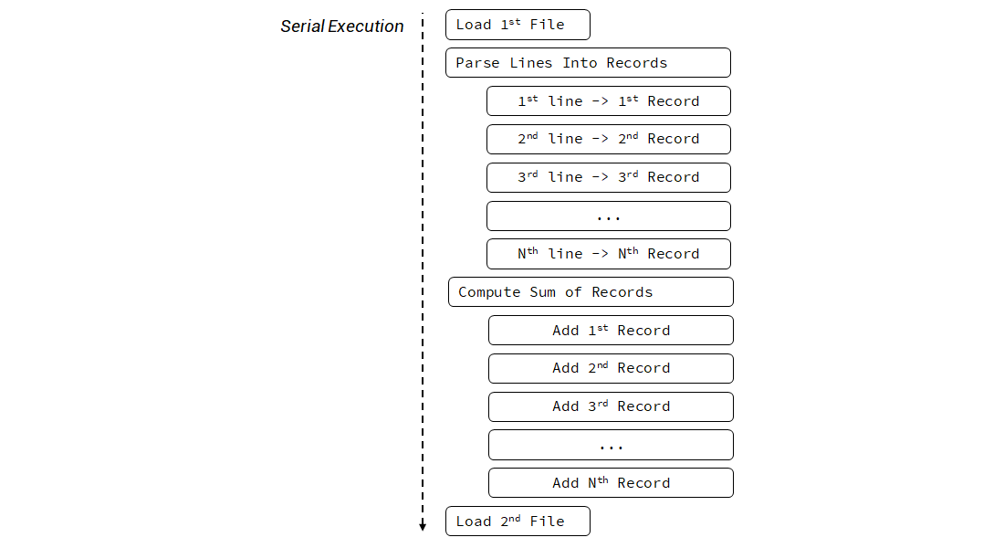 We open each file, process it, calculate, then we go to another file. All this happens on a single thread.