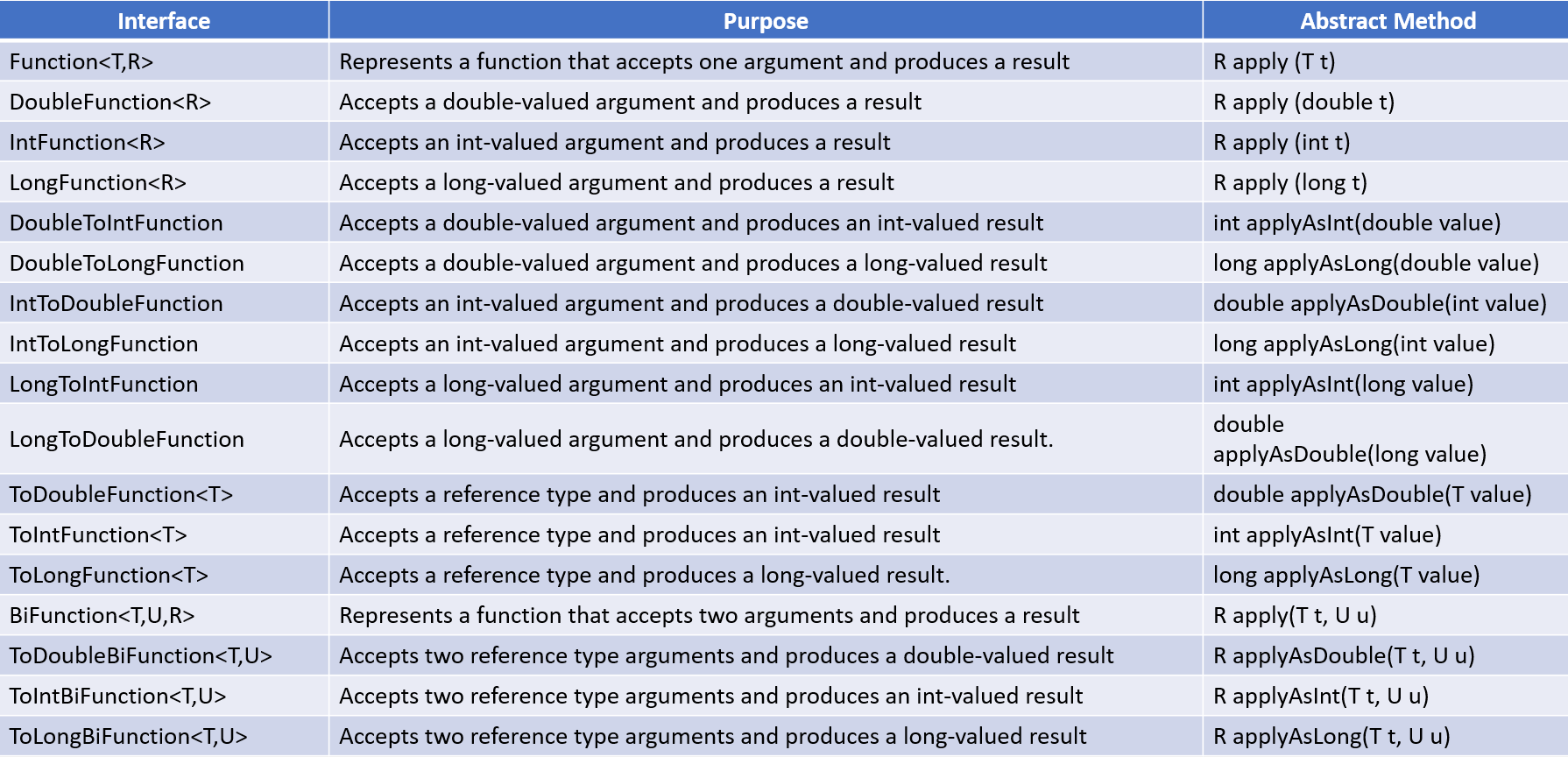 Until now, the functional interfaces that we’ve discussed have either not taken any argument(Supplier), not returned any value(Consumer), or returned only a boolean(Predicate).